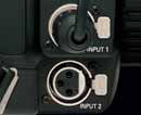 AG-HVX203A 配有与 DVCPRO 摄录一体机相同的电平调整旋钮。 这种实用的设计结合了经过多年现场使用而提炼出来的一些专业操作特征。 提供内置于话筒、输入 1 或输入 2 中,用于切换通道1、通道 2 音频输入的切换开关,可供选择。